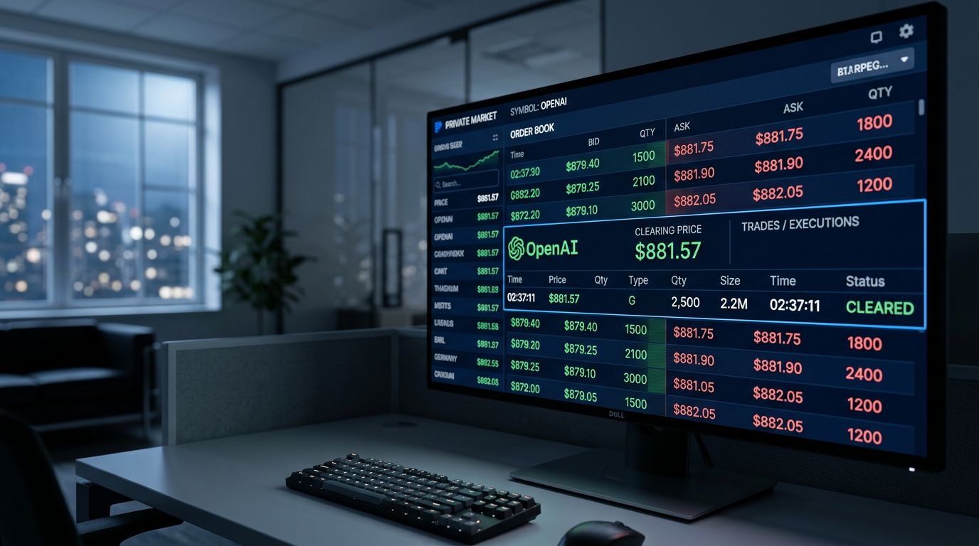 Look at this digital order book on a secondary market platform. It shows blocks of OpenAI shares clearing at $881.57.